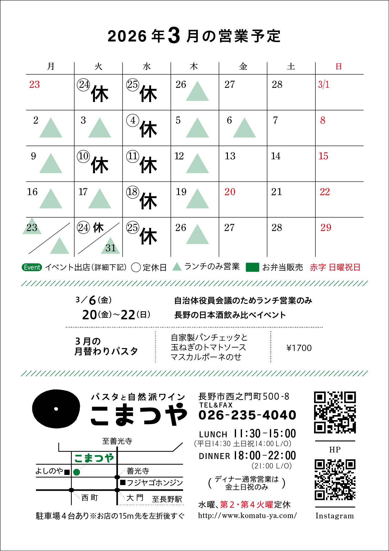 【3月の営業カレンダー】日本イベントあります!